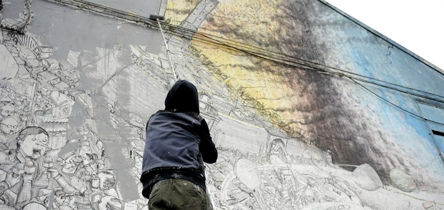 Blu esztétikai kísérletezése mindvégig az utcán zajlik, a nyilvános térben, mindenki számára látható módon. Fontos hangsúlyozni, hogy ő még annak a generációnak a gyermeke, amely számára a street art elsősorban ellenkultúra volt – nem pedig városmarketing vagy legális falakra szervezett látványosság.