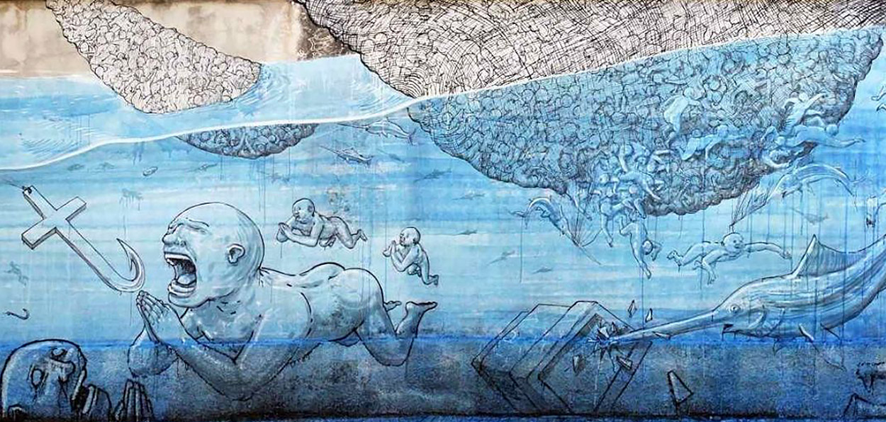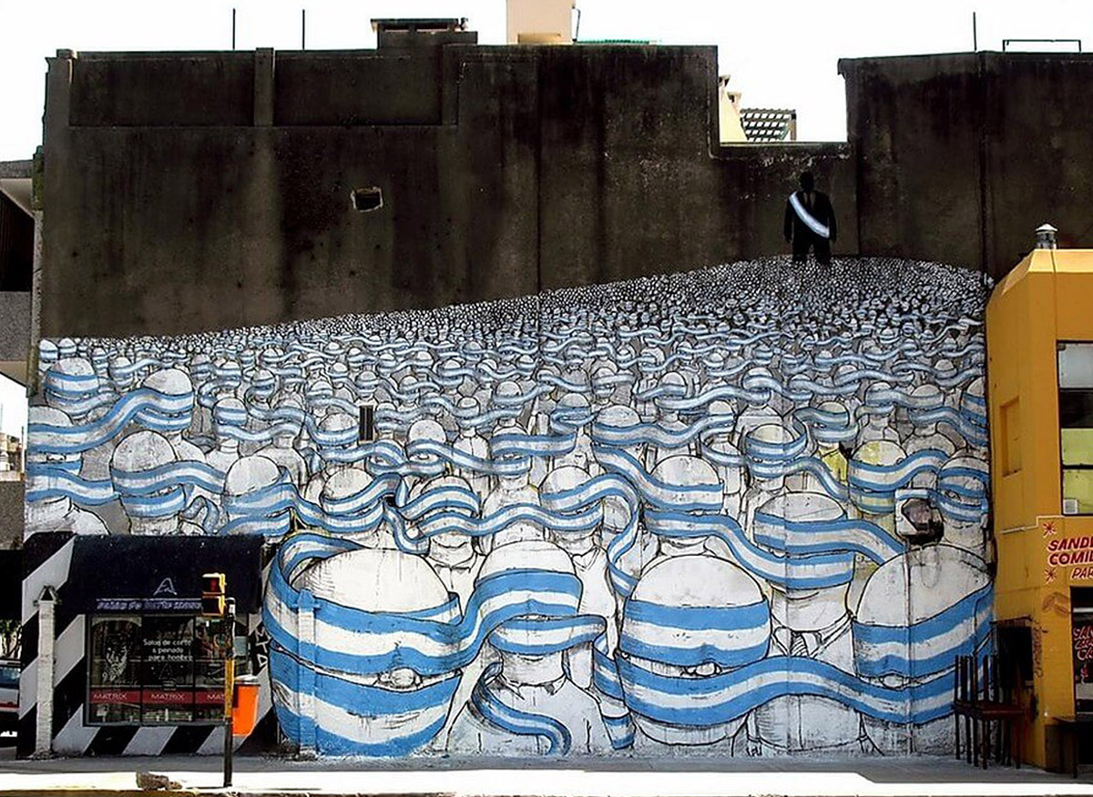 Nem feltétlenül a médiában, nem a műkereskedelmi piacon és nem is a popkulturális ismertségben – ezekben Banksy továbbra is verhetetlen. Blu azonban a szó szoros értelmében nagyobb dimenzióban mozog. Teljes házfalakat, víztornyokat, romos ipari épületeket vagy hidakat beborító alkotásaival vált ismertté. Monumentális muráljai nem pusztán dekorációk: politikai karikatúrák, groteszk allegóriák és társadalmi kritikák, amelyek az egyenlőtlenségről, a militarizmusról és a fogyasztói társadalom torzulásairól beszélnek.