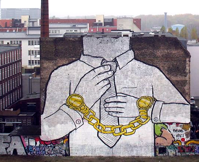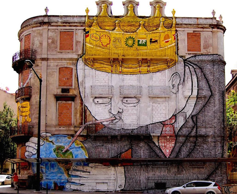 Volt idő a kétezres években, amikor egyes kritikusok erőltetett baloldali retorikát láttak a munkáiban. Azóta azonban a világ mintha egyre inkább azok felé a sötétebb forgatókönyvek felé sodródna, amelyeket Blu már évekkel korábban felfestett a falakra. Vagy egyszerűen arról van szó, hogy aki hosszabb időt tölt Latin-Amerikában, az könnyebben meglátja a globális gazdaság árnyoldalát is. A multinacionális vállalatok működése ott egészen más arcát mutatja, mint amilyet a reklámkampányokban látunk.