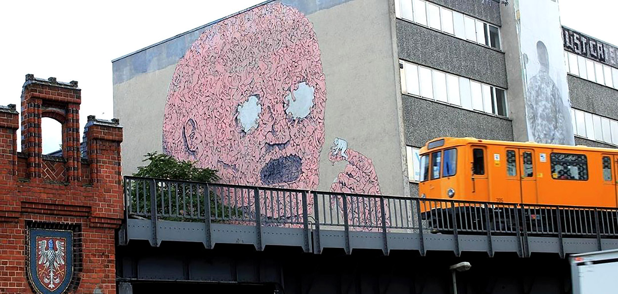 Legközelebb hozzánk Prágában, Krakkóban és Bécsben voltak – vagy részben még vannak – Blu-murálok. A bécsi, amely 2010-ben készült, néhány éve sajnos eltűnt: egy ingatlanfejlesztő egyszerűen ledózeroltatta, állítólag azért, mert nem tudta, kinek a munkája. Paradox módon ez még bele is illik Blu művészetről vallott felfogásába. Nem törekszik arra, hogy a munkái örökre fennmaradjanak, vagy intézményesen konzerválják őket. Ha nem egy város felkérésére dolgozik, időről időre váratlanul jelentet meg képeket vagy nyomatokat is – szinte ugyanazzal a logikával, ahogy egy graffiti megjelenik egy falon. Nincs kampány, nincs marketing.