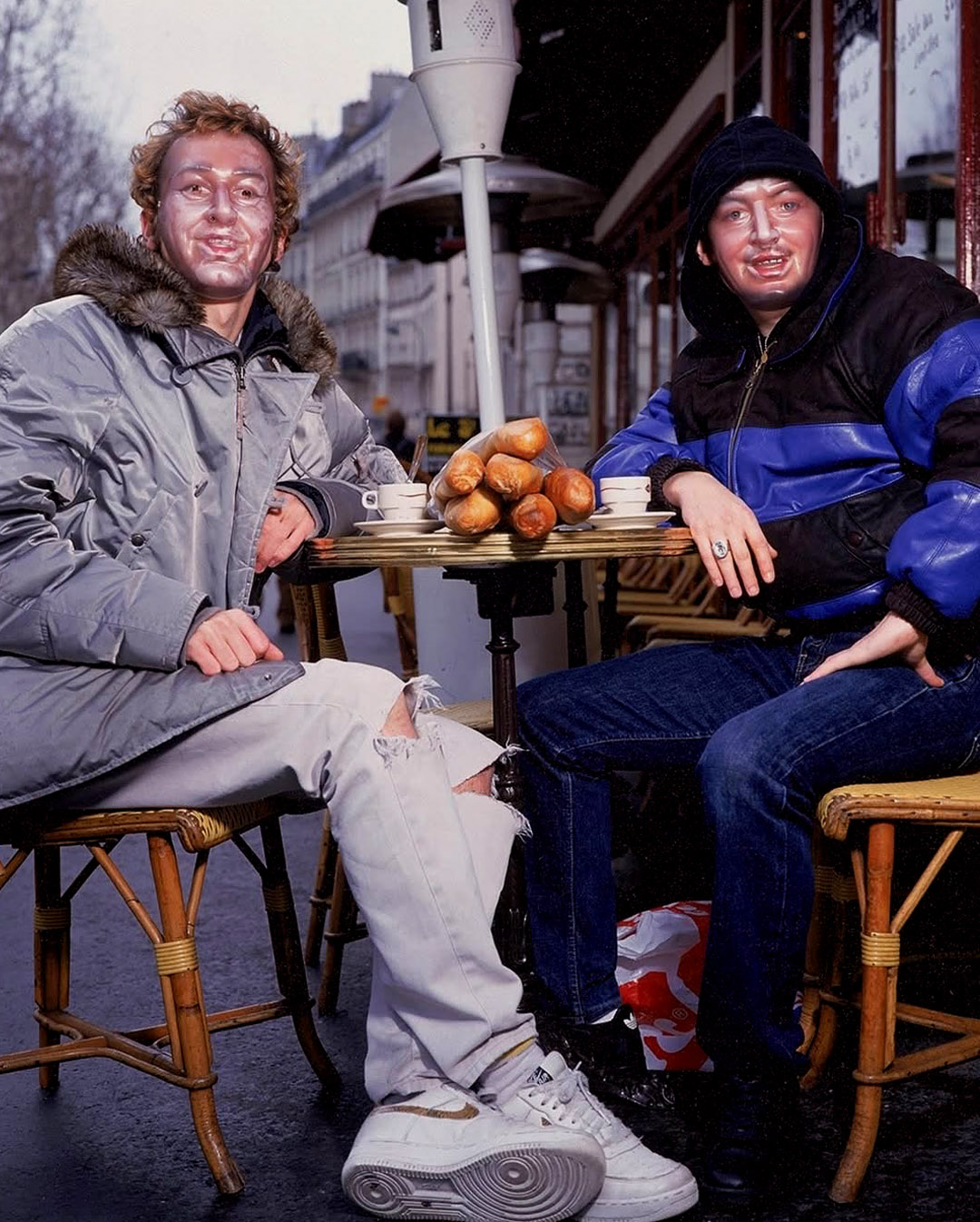 A ’90-es évek elején – jóval az ikonikus robotsisak előtt, amely végül meghatározta az imázsukat – Thomas Bangalter és Guy-Manuel de Homem-Christo még arcukat vállalva jelentek meg a médiában. A robotkultusz ekkor még sehol sem volt: helyette maszkolták, takargatták magukat mindenféle rögtönzött álarcokkal, egyszerűen azért, mert már akkor is kísérleteztek az inkognitóval. A cél világos volt: eltüntetni az ént, hogy a figyelem kizárólag a zenére összpontosuljon.