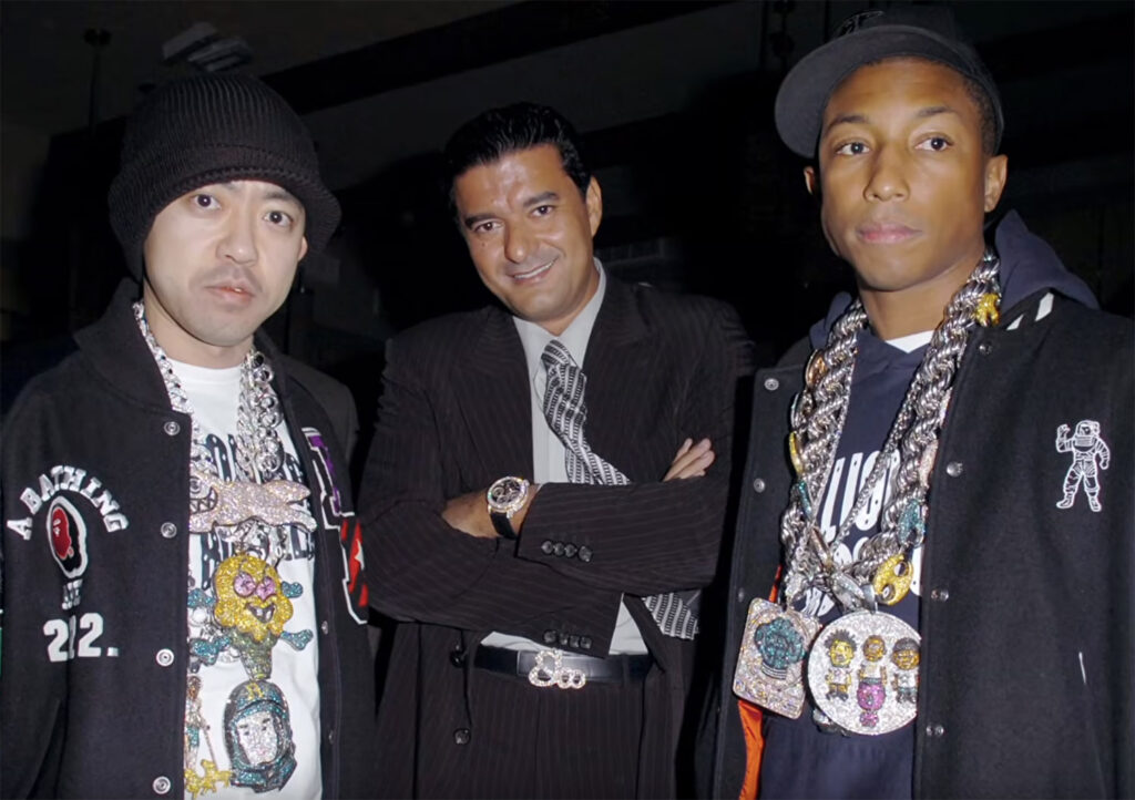 Először Pharrell-lel közös barátunkon, Jacob the Jeweler-en keresztül találkoztam” – mesélte Nigo egy friss Zoom-interjúban. Jacob the Jeweler, a hiphop világ legendás ékszerésze, maga is ennek az exkluzív körnek a tagja volt. Ő segített életre hívni Nigo és Pharrell első közös projektjét: a Baby Milo-t formázó ékszereket. Ezek forradalmasították a hiphop-ékszerek világát.