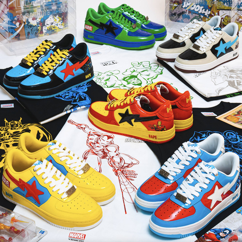 A márka olyan ikonikus médiumok szereplőit vonultatta fel kollekcióiban, mint SpongyaBob Kockanadrág, a Marvel és a DC Comics hősei, a Nintendo karakterei, valamint a Hello Kitty és a teljes Sanrio family. De nem állt meg itt: a BAPE együttműködött a Pepsi-vel, a Coca-Cola-val, a Rimowa-val, valamint a sportóriásokkal, a Nike-kal és az Adidas-szal is.