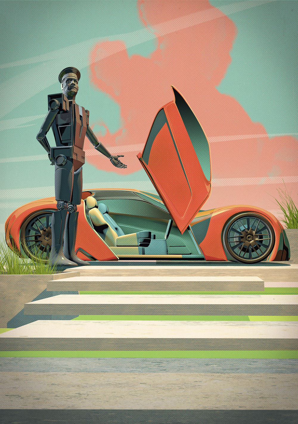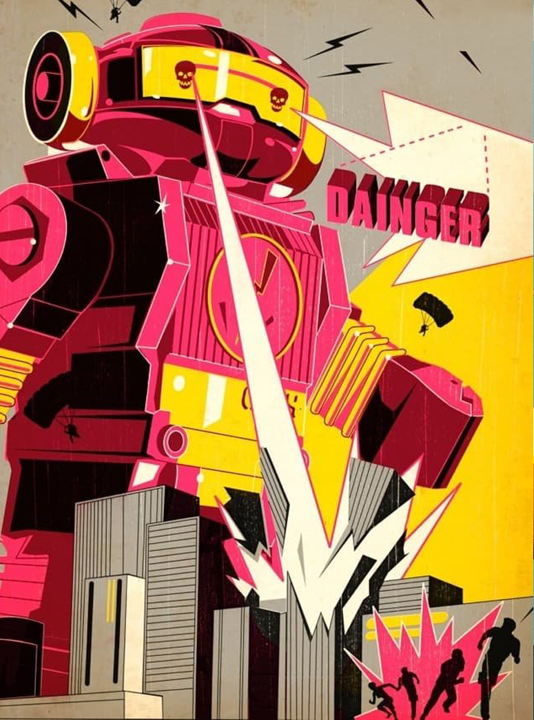 Ha azt szeretnéd, hogy céged, márkád vagy terméked menőnek, hősiesnek, modernnek és áramvonalasnak tartsák, akkor hívd Tavis Coburnt. Minden alkotása kirobbanó dinamikát és sikert sugároz, miközben sejtelmesen retrofuturista hangulatot áraszt. Művein az amerikai ötvenes évek és a komcsi propaganda plakátok legszebb pillanatai találkoznak. Minden atomtöltet egy zászló alatt.