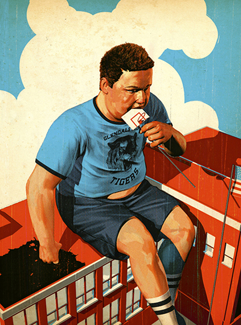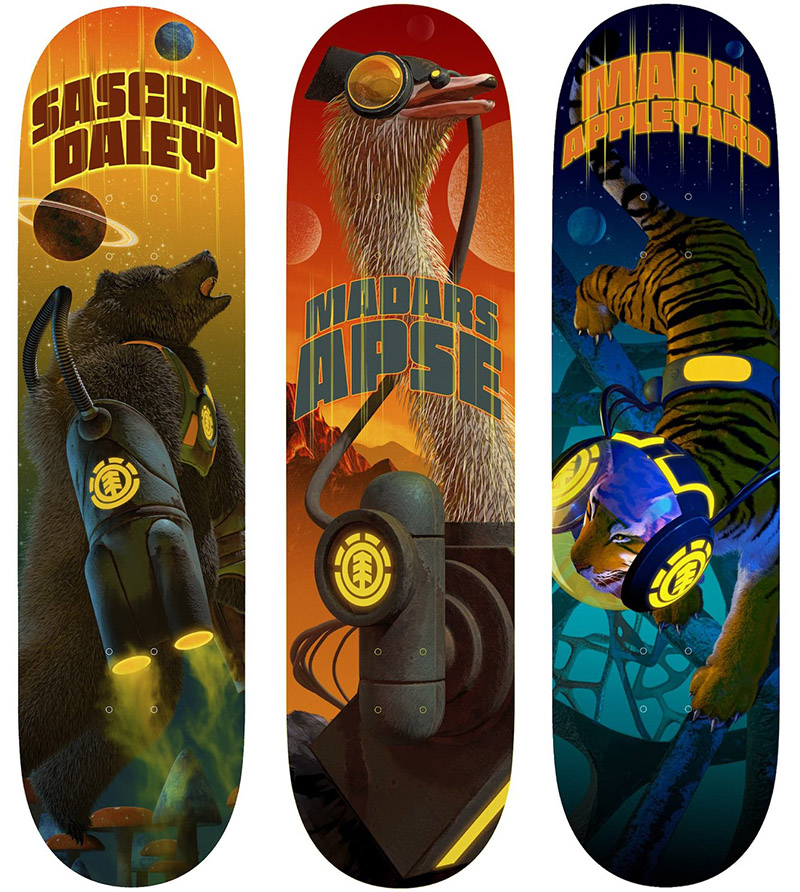 „Amikor a gyerekeim hazaérnek az iskolából, a műtermem káoszba fullad. De nekem nem kell több mint egy hárommonitoros Mac-beállítás, egy hangrendszer, egy tévé és néhány gördeszka. Egy tökéletes világban teljes munkaidőben gördeszkás grafikával foglalkoznék.” – mondja.